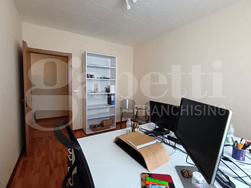 L'immobile si compone di una grande sala riunioni con tre finestre, l'ufficio principale con grande finestra sulla via principale, due stanze uso ufficio con finestra, camera ufficio singola con due finestrelle, corridoio, comodo bagno con finestra. L'immobile è proposto senza arredi ma con climatizzatori in ogni stanza.
