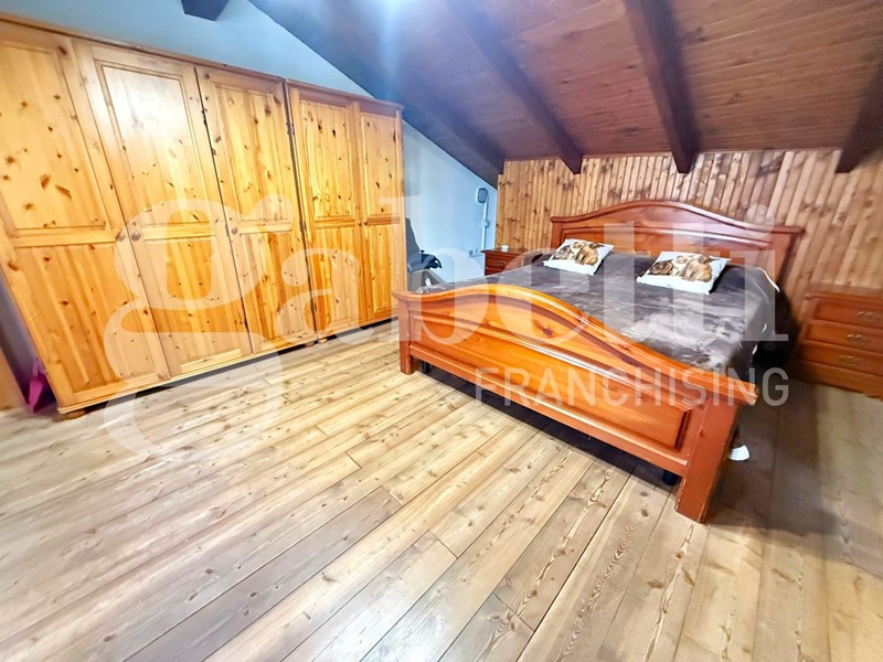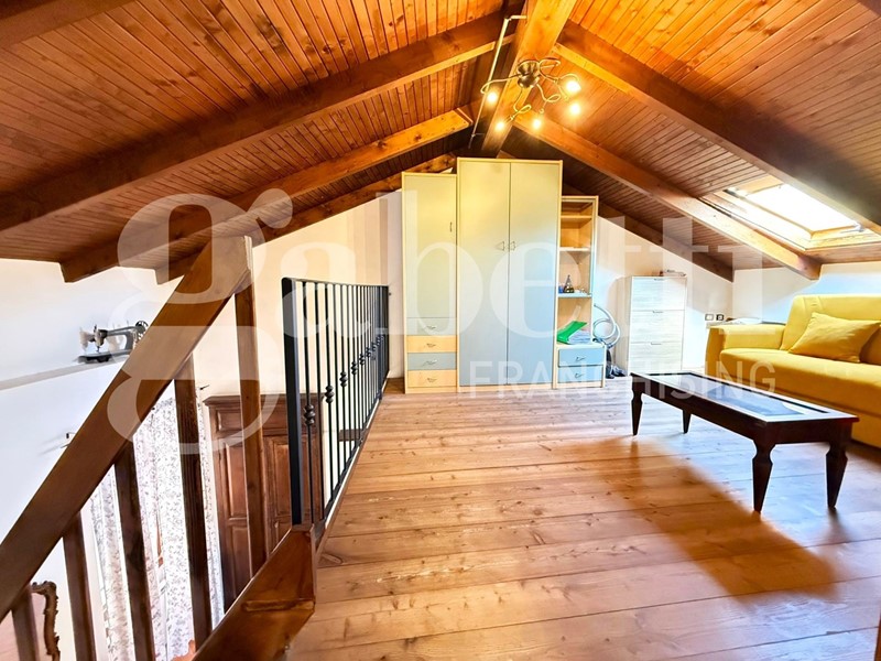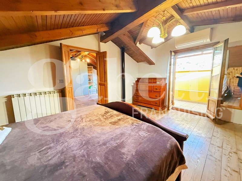 ?Soppalco: tramite una scala in legno si accede ad un accogliente salottino di passaggio e a una seconda camera da letto con accesso ad un balcone con bellissima vista aperta sulla vallata.