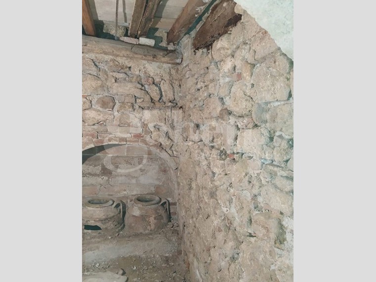 Completa la proprietà una suggestiva cantina al piano terra, con pietra e travi a vista, anticamente utilizzata come bunker durante la guerra, al cui interno si trovano ancora otri in terracotta originali.
