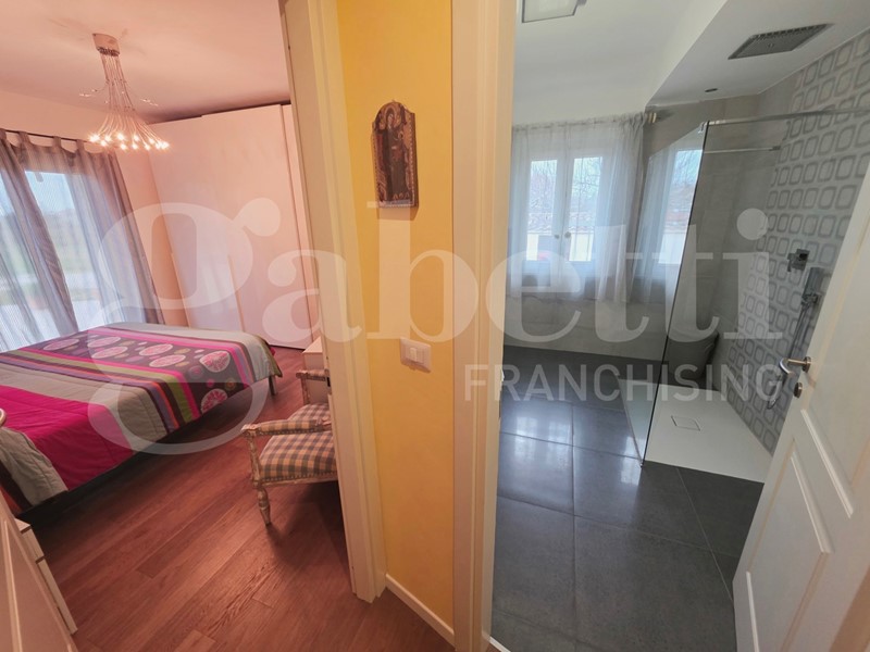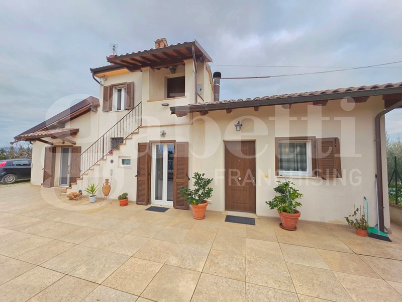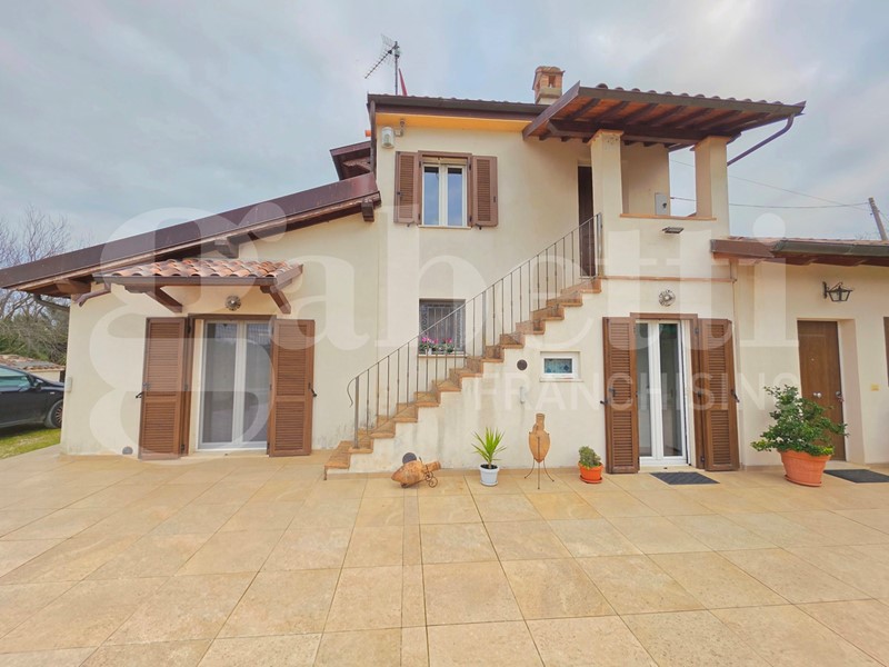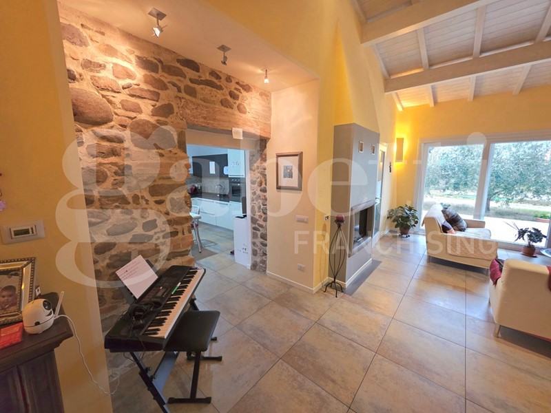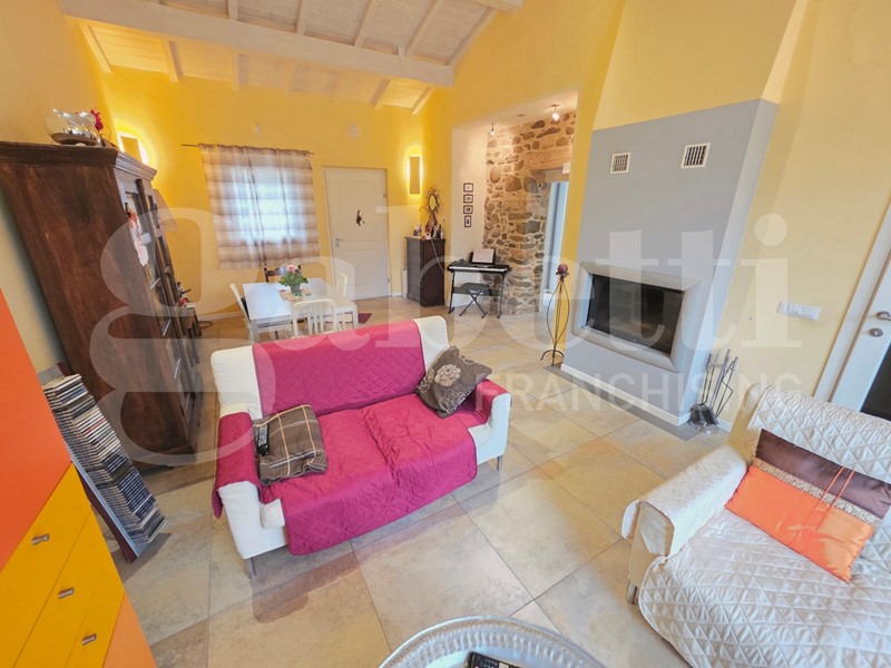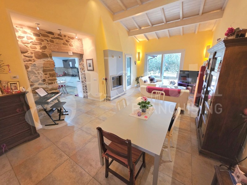 In zona verde e tranquilla disponiamo di casa indipendente in ottimo stato, completamente ristrutturata e riconsolidata di recente, dotata di cappotto termico, caldaia a condensazione, infissi nuovi, riscaldamento a pavimento e finiture di pregio. La soluzione si compone di piano terra di 130 mq con tetto in legno a vista, ingresso, ampio soggiorno con termocamino, cucina separata ed abitabile, ripostiglio, due camere da letto, due bagni ed ampio vano adibito a lavanderia; collegato sia internamente che esternamente piano primo con camera da letto con terrazzo. Gli ambienti sono luminosi e ben distribuiti, pensati per garantire comfort e funzionalità. A completamento della proprietà corte esclusiva di 3000 mq parzialmente recintata dotata di tettoia di 23 mq dove è possibile installare un impianto fotovoltaico.