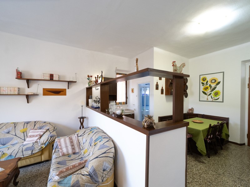 L’abitazione accoglie con un ampio salone dove la zona pranzo, il living e la cucina a vista si fondono in un ambiente armonioso e conviviale. Da qui si accede al balcone affacciato sulla via principale del paese, che regala una suggestiva vista e, nello sfondo, l’inconfondibile Rocca Spagnola, simbolo storico di Porto Ercole.