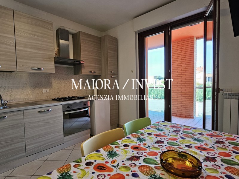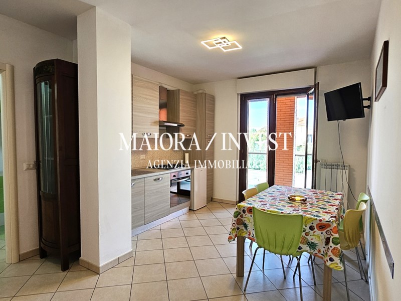 FERMO - Lido San Tommaso - In elegante palazzina situata in una privilegiata posizione fronte mare, appartamento bilocale di circa 48 mq. L'immobile si trova al primo piano, servito da ascensore, e offre una disposizione funzionale degli spazi. L’appartamento è composto da ingresso che si apre su un luminoso soggiorno con angolo cottura, disimpegno con possibilità di inserire una scaffalatura, ampia camera matrimoniale e un comodo bagno finestrato dotato di doccia. Un elemento distintivo di questa proprietà è la splendida terrazza di 30 mq, esposta a ovest, ideale per pranzare all'aperto durante i mesi più caldi. Completa la proprietà una cantina di mq 7. Inoltre, c'è la possibilità di acquistare un garage di 18 mq, con un costo da calcolare separatamente. L'appartamento vanta ottime rifiniture e comfort moderni, tra cui riscaldamento autonomo a metano, aria condizionata, portoncino blindato e infissi in legno con doppio vetro. Il prezzo indicato include l'arredo completo, come mostrato nelle fotografie. La posizione è residenziale, ben servita e a pochi passi dalla spiaggia, rendendo questa proprietà un'ottima opportunità di investimento ad uso turistico. Codice di riferimento 1511. Agenzia Immobiliare MAIORA/INVEST