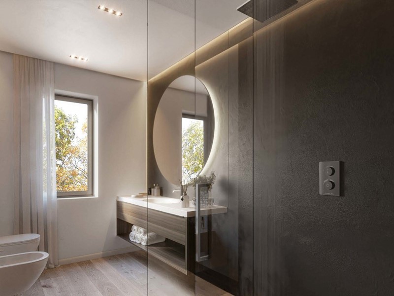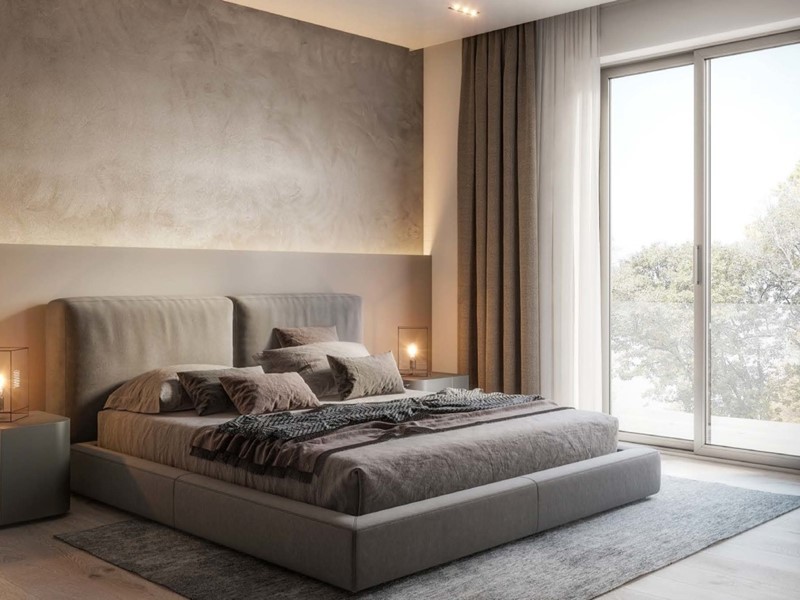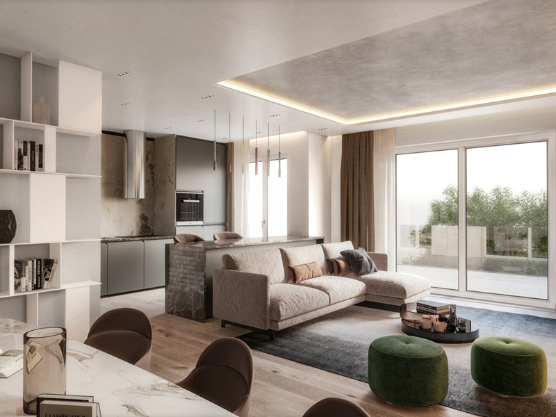 L’ingresso conduce al luminoso living open space con grandi vetrate che aprono all’ampia terrazza panoramica con cucina outdoor, spazio lounge e piscina fuoriterra. La cucina separata e abitabile affaccia su due lati: sulla terrazza e sul balcone. Un corridoio conduce al bagno principale completo di tutto, ad una stanza ad uso ufficio privato o camera singola e alla zona notte, composta da due camere matrimoniali di cui una con cabina armadio e bagno privato e una camera singola. Due balconi sono posti rispettivamente in corrispondenza della cucina e delle camere. Completa la soluzione immobiliare la possibilità di box auto e cantina di diverse ampiezze.