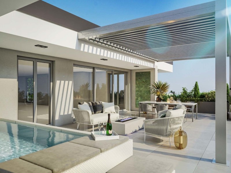 Prestigioso attico di 210 mq posto al secondo piano con ampi terrazzi di 133 mq con vista panoramica e piscina fuoriterra.
