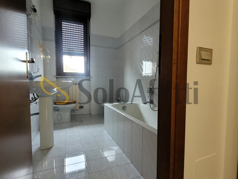 Nel pieno centro del paese, a lato di tutti gli esercizi commerciali, ed a circa 600 mt. dalla stazione ferroviaria, proponiamo in affitto alloggio di circa 110 mq. sito al secondo e ultimo piano di una signorile palazzina anni '70. L'alloggio si compone d'ingresso direttamente sulla zona giorno organizzata da ampio e luminoso soggiorno illuminato da importante porta finestra con diretto accesso al balcone con tenda da sole; cucina abitabile con ulteriore accesso sul balcone e comodo ripostiglio chiuso e scaffalato; Il corridio anch'esso arredabile snoda la zona notte in due camere da letto con elegante parquet lamato e lucidato e doppio bagno uno con vasca e uno con box doccia. Completa l'alloggio l'ampia cantina di pertinenza. Riscaldamento autonomo. Libero subito.