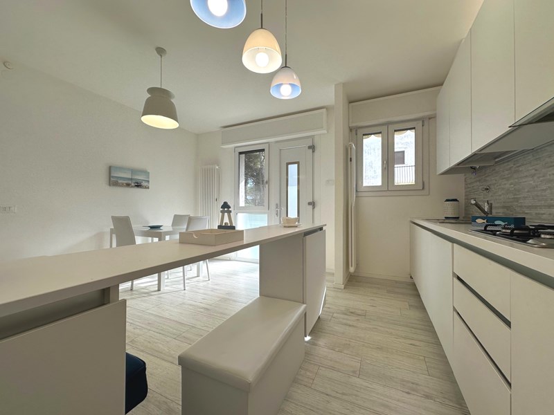 A Lignano Pineta (Ud) Corso dei Monsoni ang. Arco del Caiccio, a 700 metri dalla spiaggia e a 250 metri dal centro, proponiamo in vendita con incarico in esclusiva appartamento TRILOCALE abitabile tutto l’anno, completamente ristrutturato, finemente arredato, termoautonomo e climatizzato facente parte di un complesso composto da due palazzine di soli 10 appartamenti ciascuna dotata di autorimessa con posti auto situata al piano seminterrato.