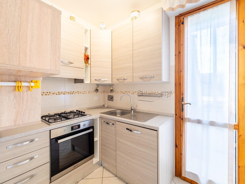 Cucinotto con ampio balcone e comodo ripostiglio — pratico per la vita quotidiana.