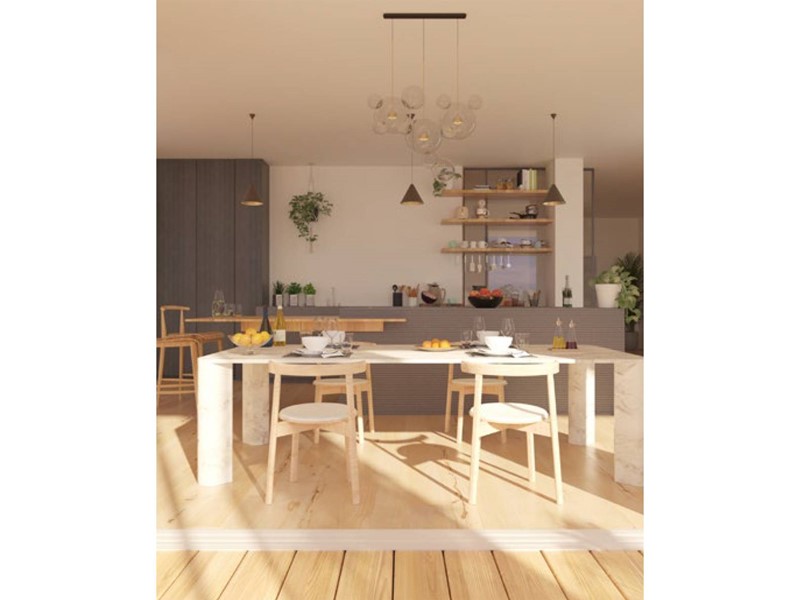 UNITÀ 1 - TRILOCALE: appartamento di circa 109 mq. commerciali, composto da ampia zona living/soggiorno con cucina a vista, due camere, doppi servizi, un terrazzo di circa 82 mq.