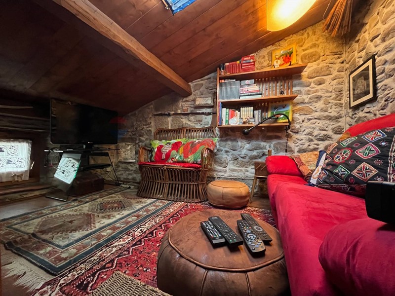 -Primo piano: studio, soppalcato con angolo relax, spazioso salotto con doppia finestra con camino funzionante per allietare le fredde serate invernali, cucinotto, bagno con doccia.