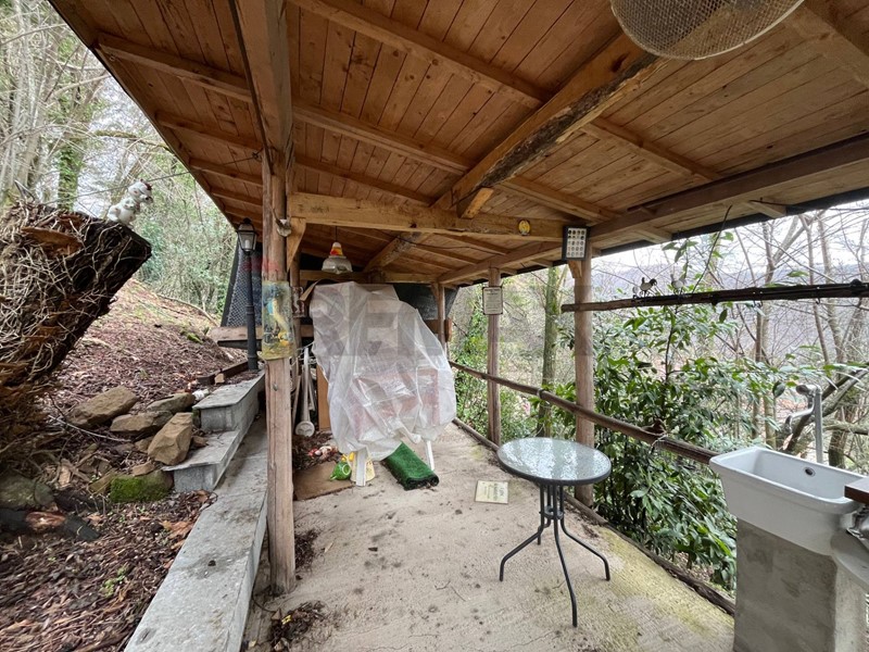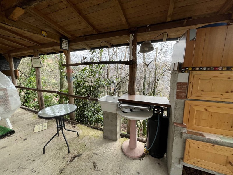 A corredo della proprietà a circa 100 mt dall'immobile, grazioso giardino panoramico attrezzato con piccola serra e veranda in legno con cucina all'aperto ideale per chi desideri coltivare un orto o godersi un po' di relax in giardino durante la stagione estiva.