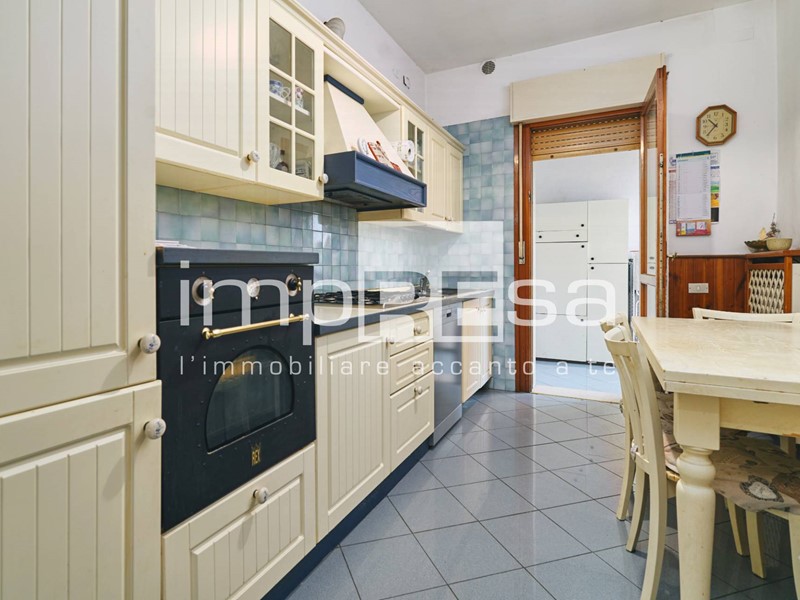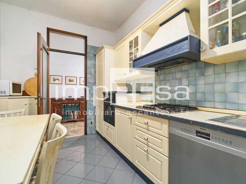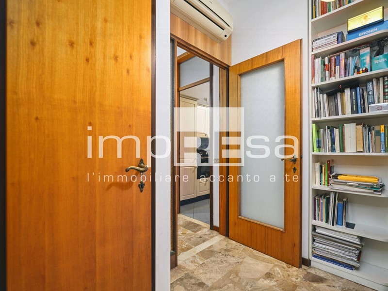 ingresso comodo da arredare con una cappottiera, cucina abitabile e separata con accesso ad una veranda allestita ad uso lavanderia, ampio soggiorno di 24 mq. con terrazzo di pertinenza esposto a nord con vista sul campanile della Chiesa di San Nicolò