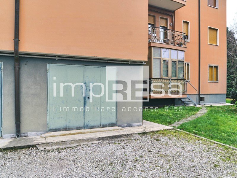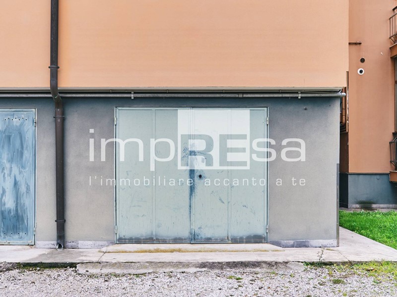 Al piano terra un comodo magazzino/garage di 24 mq. il cui basculante ha una apertura di 217 cm. e la lunghezza di 477 cm con altezza di cm 220. Adiacente al magazzino/garage c'è la possibilità di parcheggiare ad uso esclusivo 2 auto.