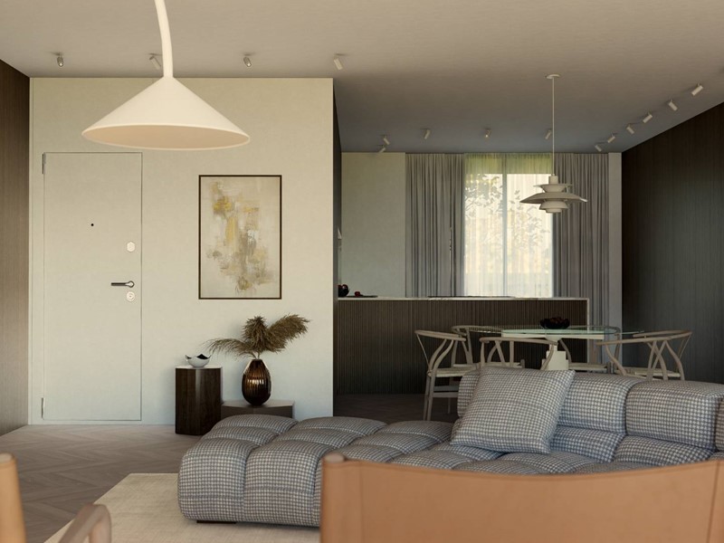 L'appartamento, in corso di costruzione, sarà terminato per Giugno 2028 con rifiniture a scelta dell'acquirente come e pavimentazioni in parquet o Grace porcellanato, infissi in alluminio certificati, impianto di riscaldamento a pavimento, impianto di climatizzazione caldo e freddo con split in ogni stanza, portoncino blindato d'ingresso, video citofono smart con risposta da smartphone, illuminazione esterna del fabbricato Guzzini, struttura antisismica.