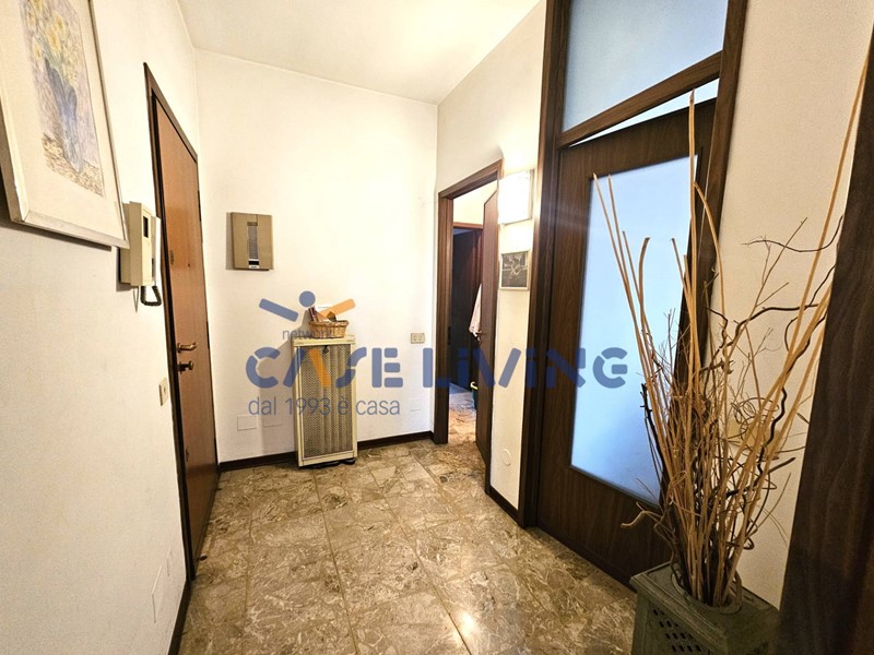 La disposizione degli spazi è razionale e funzionale, con uno spazioso soggiorno e una cucina abitabile entrambi affacciati su un ampio balcone con vista sul parco condominiale, tre camere da letto, 2 bagni entrambi con affaccio su un piccolo e comodo balcone e ripostiglio. Completa l'immobile una cantina al piano interrato raggiungibile in ascensore.