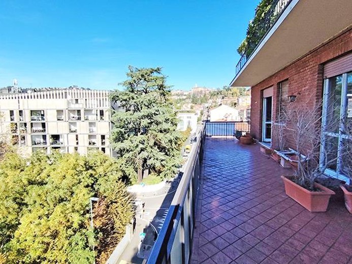 La caratteristica dell'immobile è la grande terrazza panoramica a cui accedono la maggior parte degli ambienti della casa, la terrazza gode di una vista molto ampia fronte parco Diaz e fronte città alta.