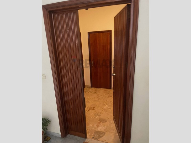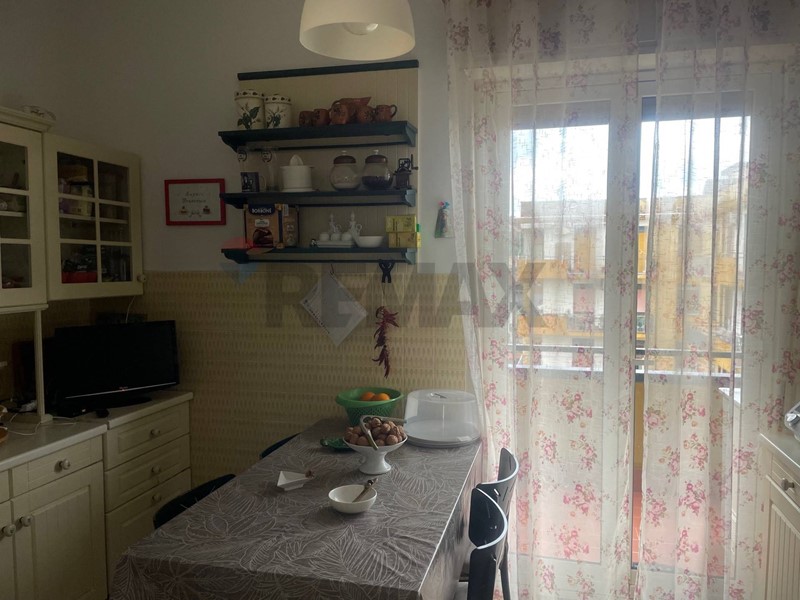 ingresso con saletta, a seguire ripostiglio, salone di 2 vani con balcone e finestra, due camere da letto anch'esse balconate, cucina abitabile, bagno e lavanderia con servizio. Tutti gli ambienti sono ben distribuiti e luminosi, grazie alla presenza di ampie aperture che permettono un ottima illuminazione naturale