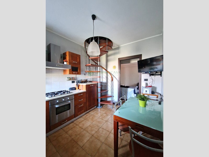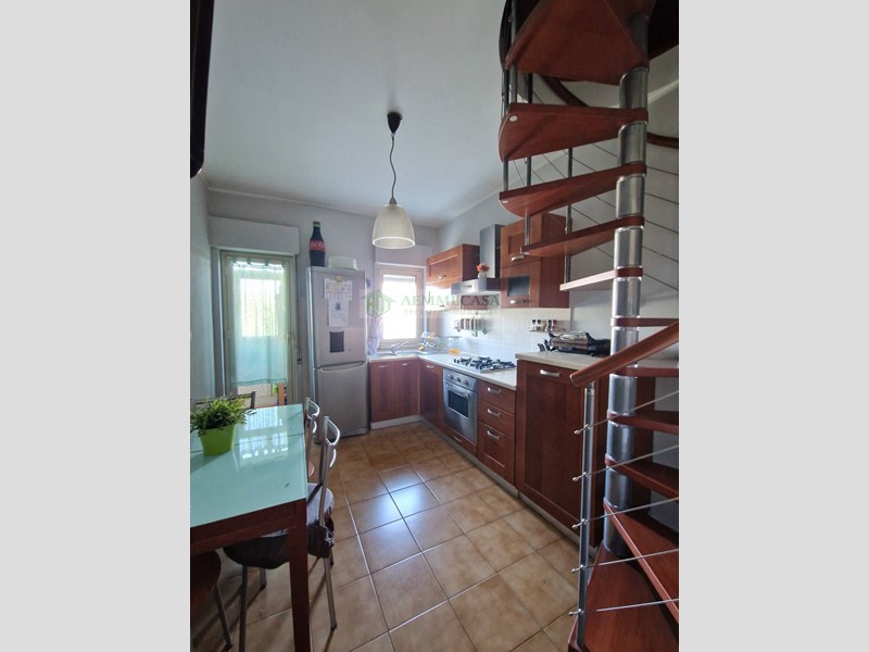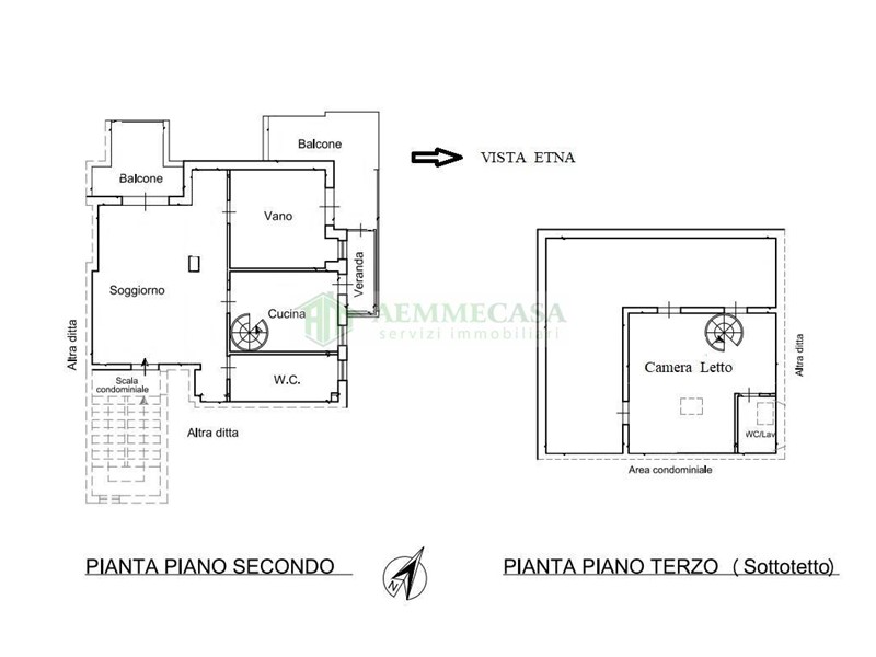 L'immobile è ubicato al secondo piano e si sviluppa su due livelli, così distribuiti: ingresso su ampio soggiorno, cucina abitabile, camera, bagno con doccia e tramite una scala a chiocciola si accede al piano mansardato dove troviamo una camera da letto padronale con bagno privato. L'immobile oltre ad una veranda adibita a lavanderia è dotato di due comodi balconi che danno un meraviglioso affaccio sul golfo di Catania e sull'Etna. Internamente si presenta in ottime condizioni, la pavimentazione è in ceramica , gli infissi in alluminio bianco con doppio vetro/camera, impianti idrico ed elettrico revisionati ed il riscaldamento è gestito autonomamente da stufa a pellet. Il residence ben curato dispone di aree destinate a parcheggio.