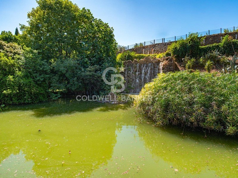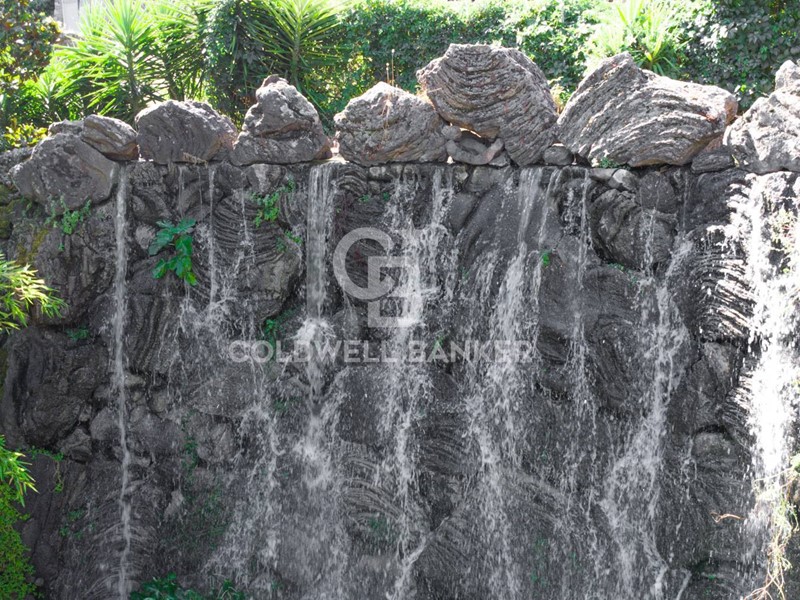 Giardino curato con elegante laghetto in pietra lavica;