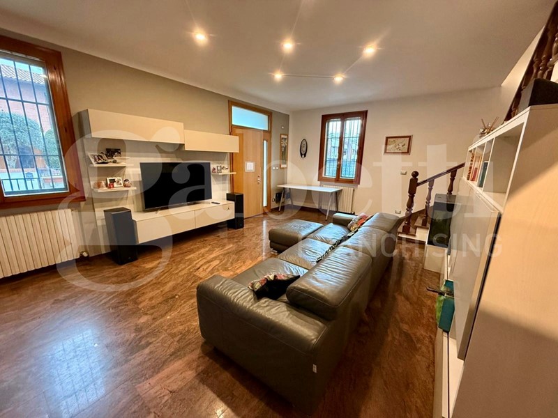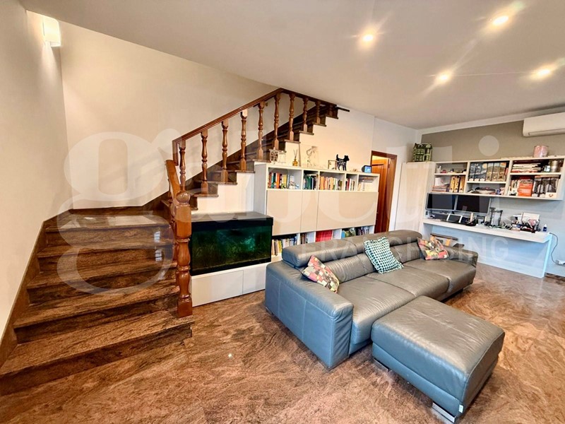 L' immobile è composto al piano terra da ingresso su soggiorno, cucina abitabile, disimpegno dotato di armadio a muro e bagno finestrato: al piano superiore si trova la zona notte costituita da 3 camere da letto ( 2 matrimoniali e 1 doppia), bagno finestrato e terrazzo; al piano seminterrato zona bagno/lavanderia, ampio ambiente pluriuso (taverna) e garage con basculante motorizzato.
