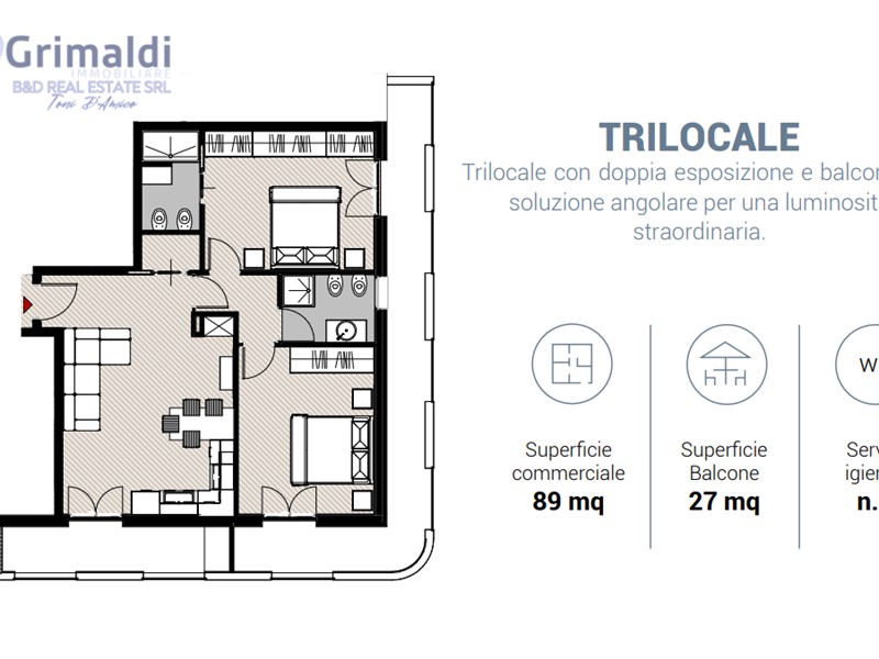All'interno di un edificio servito da ascensore sono disponibili le ULTIME DISPONIBILITA' di luminosi appartamenti ad angolo di 3 vani, con superfici di 89, pensati per offrire ambienti ampi, luminosi e funzionali, nelle ultime disponibilità. Le abitazioni si sviluppano con una confortevole zona living con angolo cottura, 2 camere da letto, 2 servizi (uno in camera) e ripostiglio, e si affacciano su comodi balconi dotati di attacchi per acqua, scarico e corrente elettrica, ideali per organizzare una lavanderia esterna o un piacevole spazio living all'aperto.