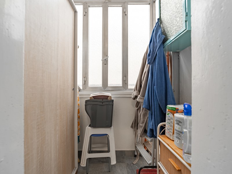 ingresso, soggiorno doppio con balcone, cucina, camera matrimoniale e bagno finestrato con accesso diretto al balcone verandato attualmente utilizzato come zona lavanderia/ripostiglio.
