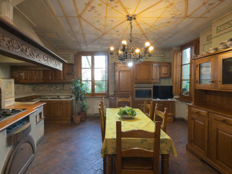 La distribuzione interna è elegante e armoniosa: 2 ampi saloni affrescati, soggiorno con soffitto a cassettone e splendida luminosità grazie all’esposizione a sud, cucina abitabile, sala da pranzo, 6 camere da letto, 6 bagni, lavanderia, zona studio con bagno e ripostiglio.