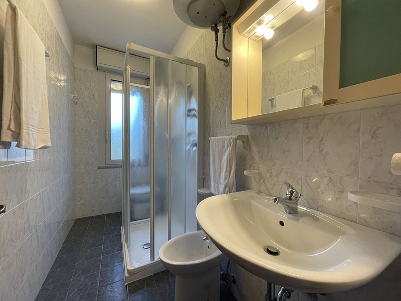 Gli appartamenti sono dislocati al piano primo, secondo e terzo ed hanno tutti le seguenti caratteristiche: zona giorno con divano letto doppio, angolo cottura con finestra, terrazzo, disimpegno, camera con letto matrimoniale e camera con due letti singoli, bagno con box doccia ristrutturato e finestrato. A ciascun appartamento è abbinato un posto auto coperto e numerato posizionato sotto il colonnato del fabbricato.