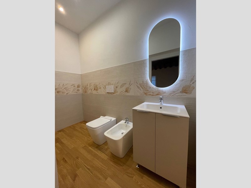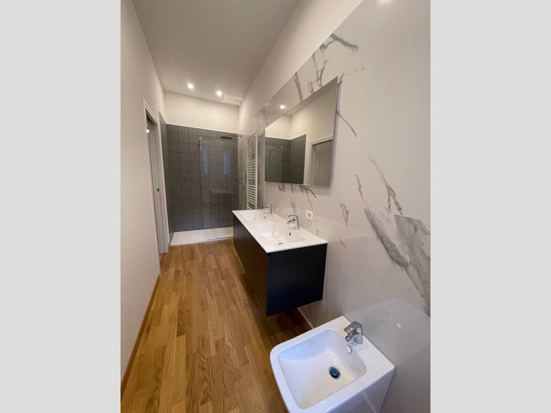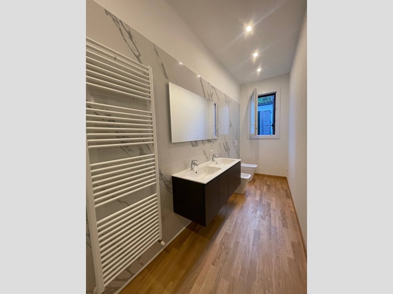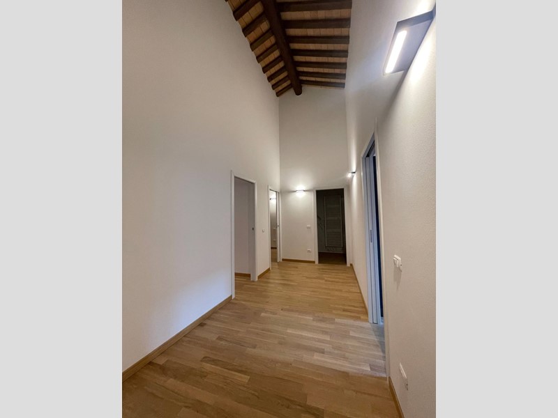 L'immobile è rifinito con materiali di pregio, pavimenti in parquet in tutte le stanze, bagni in marmo.