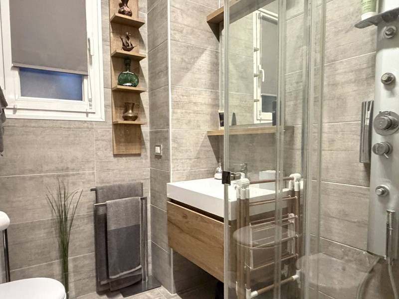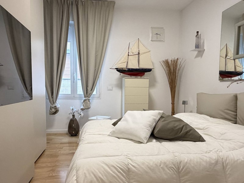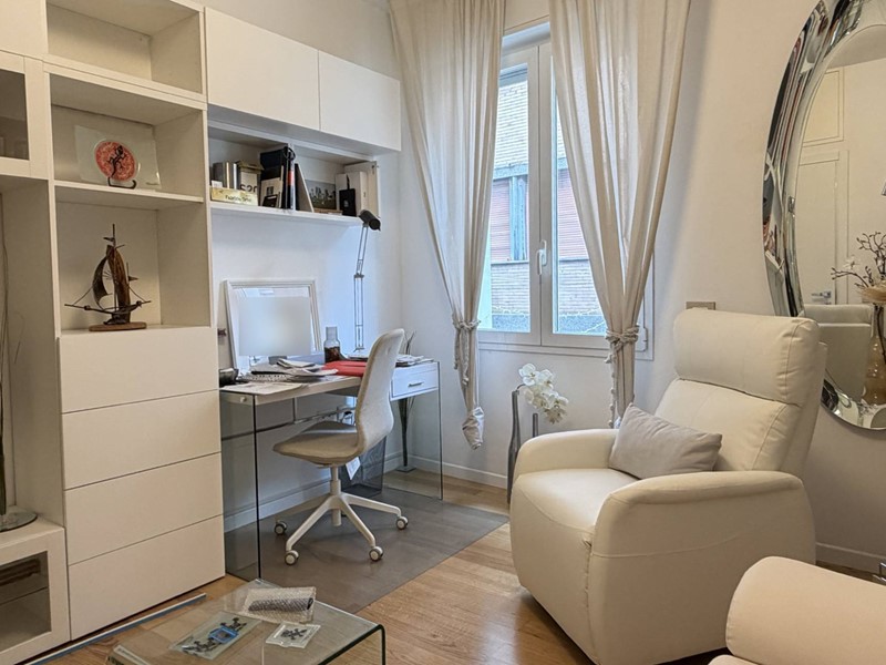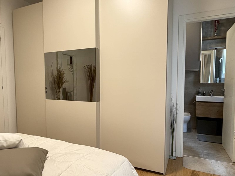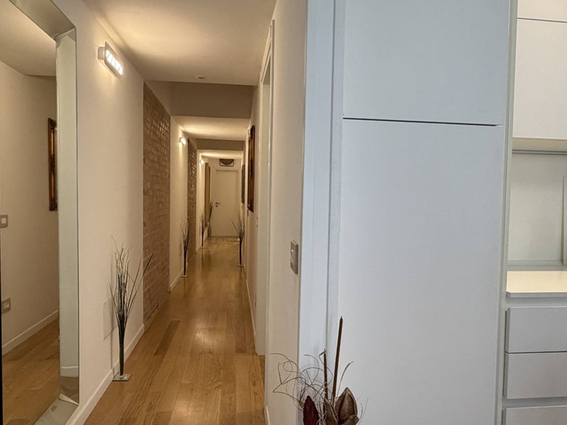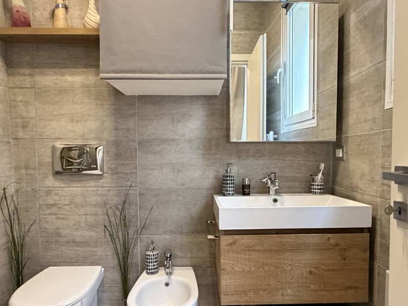 L'appartamento si presenta totalmente ristrutturato (impianti, infissi e pavimentazione compresa) con ottimo gusto e pregevoli finiture, tra cui l'elegante pavimento in parquet, e arredato con mobili che su richiesta possono essere acquistati a parte.