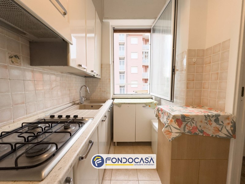 Lappartamento si apre su un disimpegno che conduce al soggiorno con cucinotto ristrutturato e accesso al balcone, ideale per un angolo di relax allaria aperta.