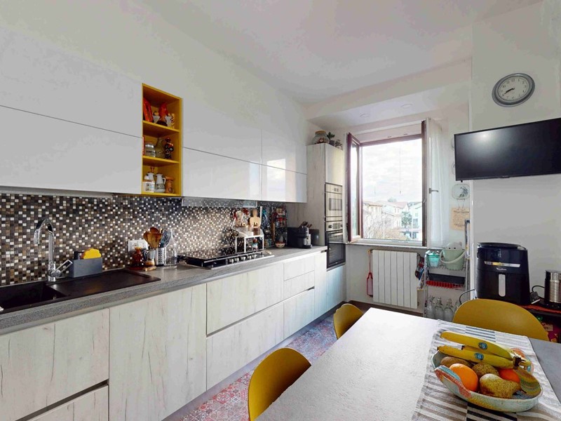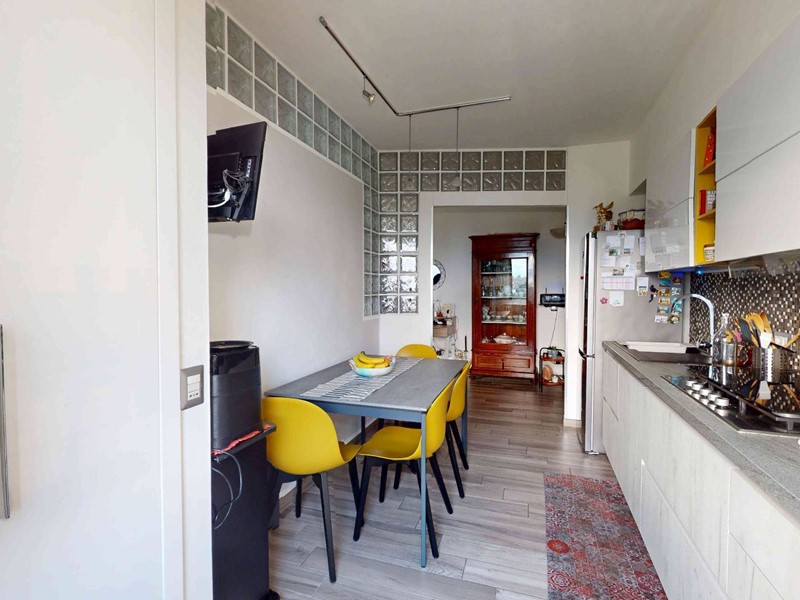 Lingresso si apre direttamente sulla zona LIVING, un soggiorno accogliente con accesso al TERRAZZINO COPERTO ma con visuale di ampio respiro ideale per piacevoli momenti all'aria aperta. In adiacenza la CUCINA ABITABILE è parzialmente aperta, una soluzione pratica e CONVIVIALE perfetta per la quotidianità e per ricevere ospiti.