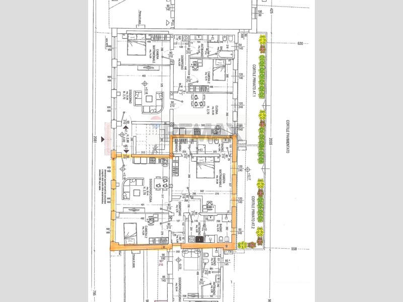 Lintera corte sarà dotata di barriera automatica per laccesso veicolare, serramenti con doppio vetro, portoncini blindati, spazi comuni verdi condominiali.