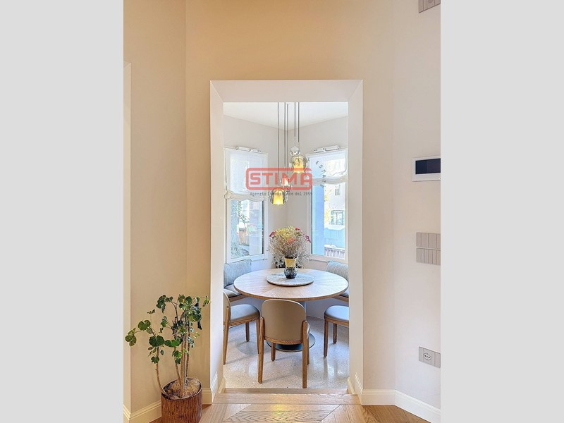 Questo splendido piano nobile, offre un'esperienza abitativa di lusso, caratterizzata da finiture di pregio e arredi di design che si fondono armoniosamente con l'eleganza storica dell'edificio. L'accesso esclusivo tramite scale esterne garantisce privacy e indipendenza.