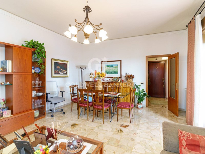 ingresso su saletta, salone doppio con esposizione su via Etnea e uscita su terrazzo di circa 16 mq, cucina abitabile con affaccio su balcone, tre camere da letto, servizio di rappresentanza con vasca, lavanderia interna con servizio. Riscaldamento termoautonomo e climatizzato.