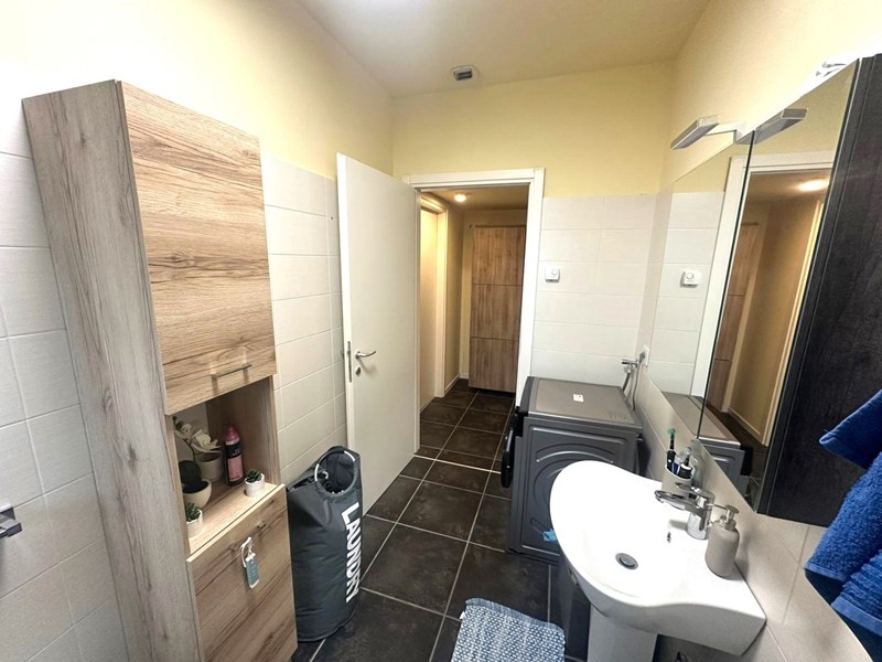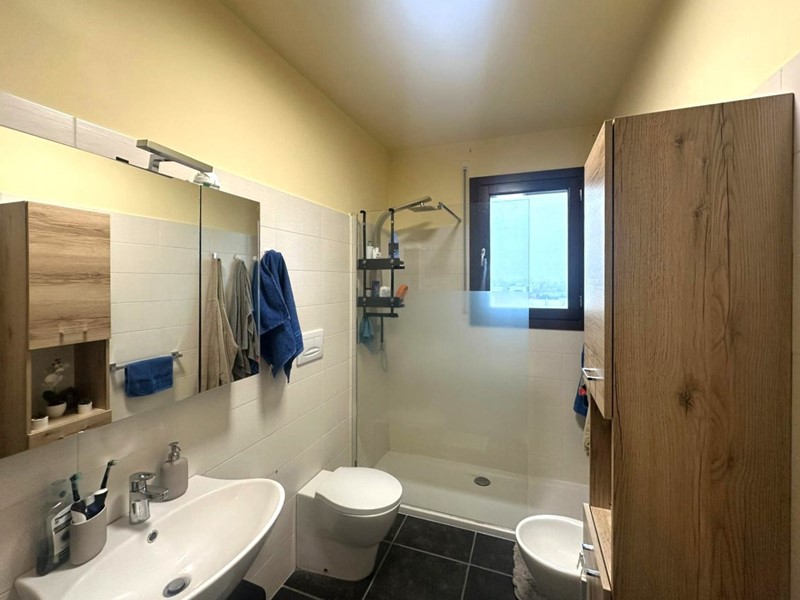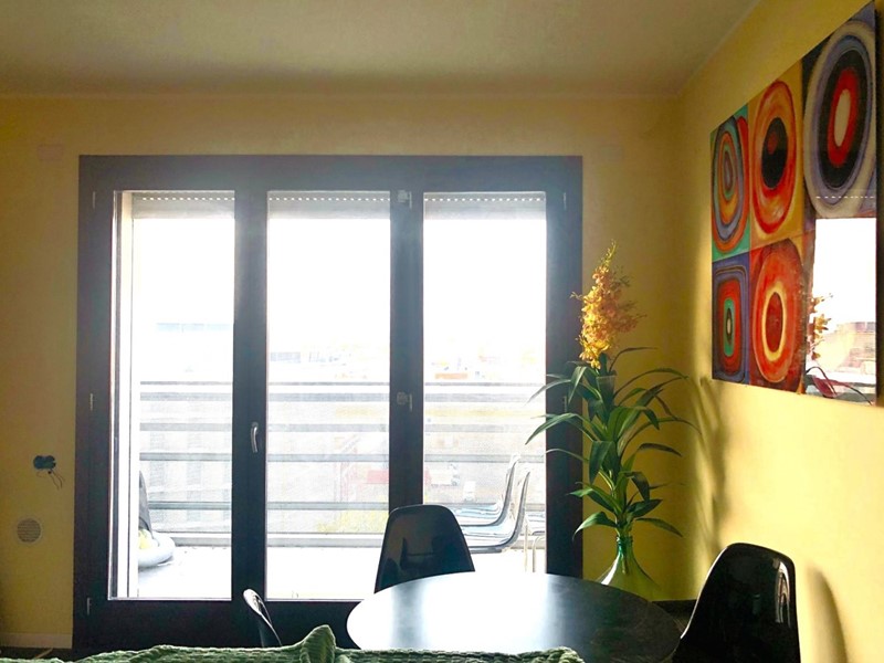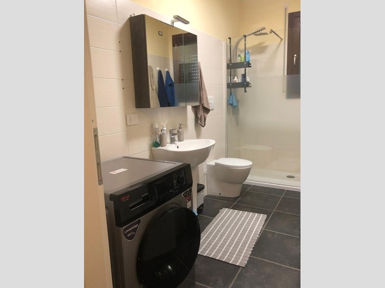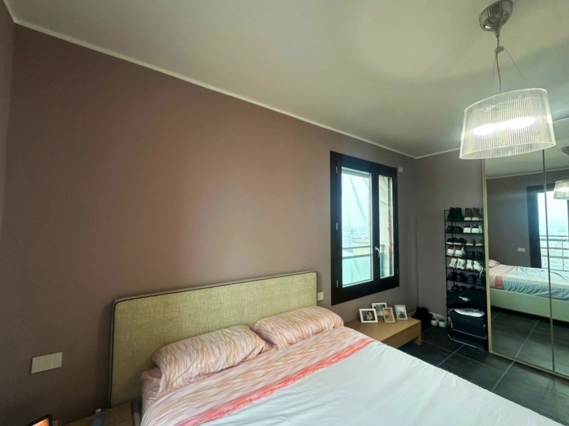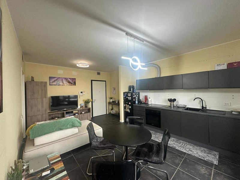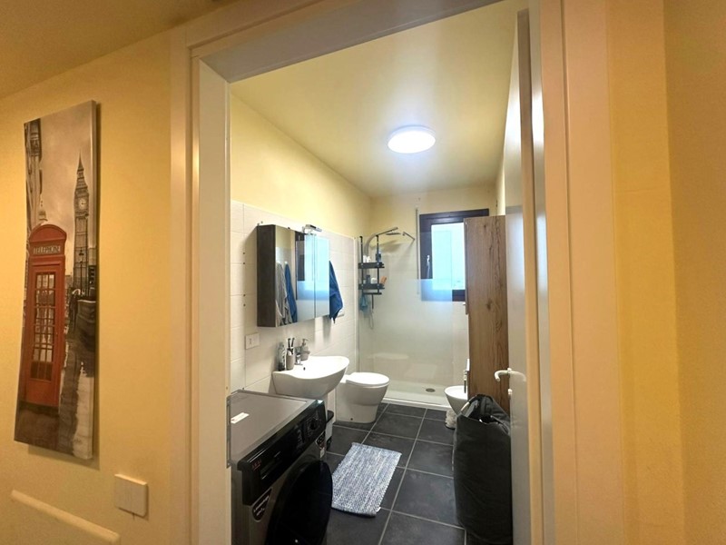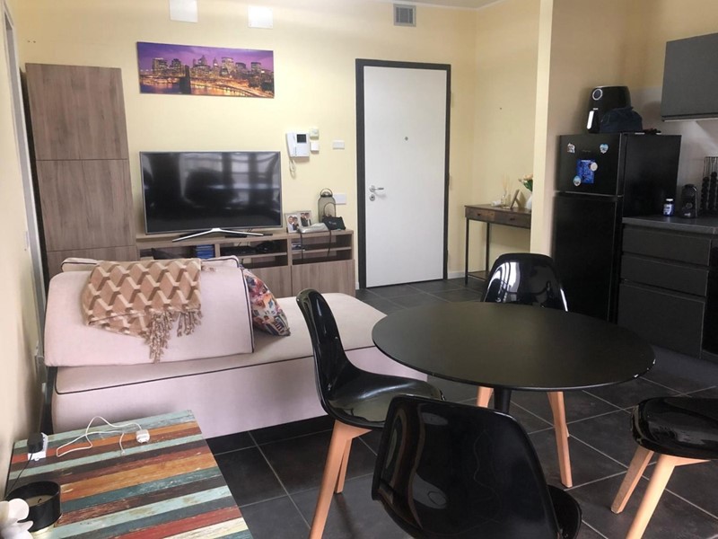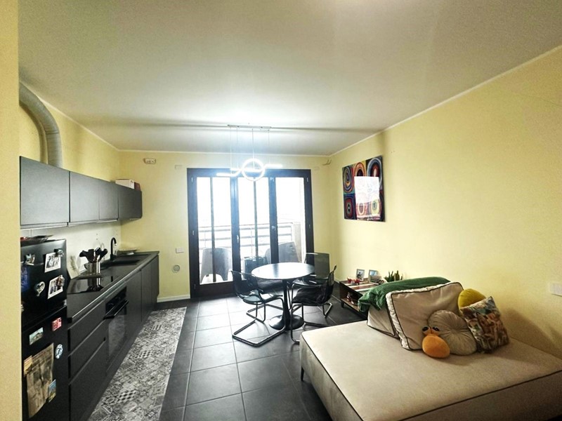 Ingresso sulla zona giorno con cucina a vista e balcone, disimpegno, bagno finestrato con doccia completo di servizi, camera matrimoniale finestrata. L'appartamento viene locato compreso di arredamento ed è dotato di riscaldamento e raffrescamento a pavimento centralizzato.