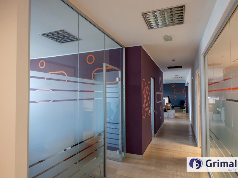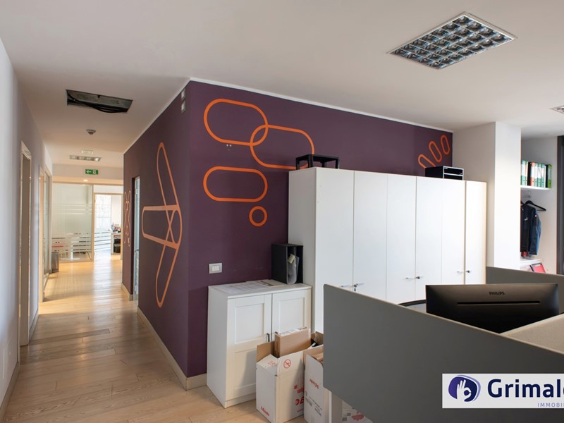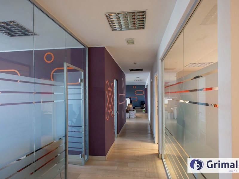 L'ufficio/studio ha una superficie interna commerciale di mq. 250 ca, sviluppato su un unico livello, tipologia 5 moduli (separati da muri e vetrate), composto da ingresso, 5 uffici, di cui uno doppio, 4 servizi con antibagno, 3 ripostigli, ampia area ristoro, ampio locale tecnico, 5 terrazzi, 5 posti auto coperti.