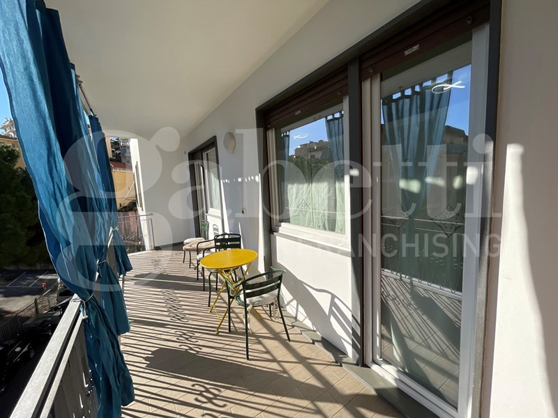 Presentiamo un incantevole bilocale di 60 mq, completamente ristrutturato, situato in una posizione privilegiata a pochi passi dal centro città. Questa unità abitativa è caratterizzata da una terrazza vivibile, esposta al sole, che offre uno spazio ideale per momenti di relax all'aperto. L'immobile è composto da una cucina a vista abitabile, arricchita da un moderno piano cottura a induzione, perfetta per chi ama cucinare. La grande sala, caratterizzata da ampie finestre, è inondata di luce naturale, creando un ambiente accogliente e luminoso. Il bagno è elegantemente arredato, completo di sanitari sospesi e un boiler per la produzione di acqua calda. La camera da letto, anch'essa ben illuminata e climatizzata, vanta un piccolo balconcino, perfetto per godere della vista panoramica circostante. Tra le altre caratteristiche, segnaliamo la presenza di condizionatori in tutte le stanze e riscaldamento regolato tramite termovalvole, garantendo così un comfort abitativo in ogni stagione. Gli infissi con doppi vetri e tapparelle elettriche contribuiscono a un elevato isolamento acustico e termico, mentre la porta blindata offre un ulteriore livello di sicurezza. Il bilocale viene venduto arredato, consentendo di trasferirsi senza ulteriori spese iniziali. Le spese condominiali sono contenute, ammontando a soli 50 euro al mese, e la presenza dell'ascensore aggiunge un ulteriore valore alla proprietà. E' disponibile inoltre un posto auto condominiale per carico e scarico, rendendo questo bilocale una scelta ideale per chi cerca praticità nella vita quotidiana. E' possibile acquistare un posto auto al prezzo di euro 25.000. Questa proposta rappresenta un'opportunità imperdibile per chi cerca un'abitazione moderna, confortevole e ben collegata ai servizi della città. Per informazioni e per visitare questa interessante proposta immobiliare si prega telefonare al Geom. Borla Domenico Cellulare 347/262.86.18 347/464.46.82 Ufficio 0184/99.07.91