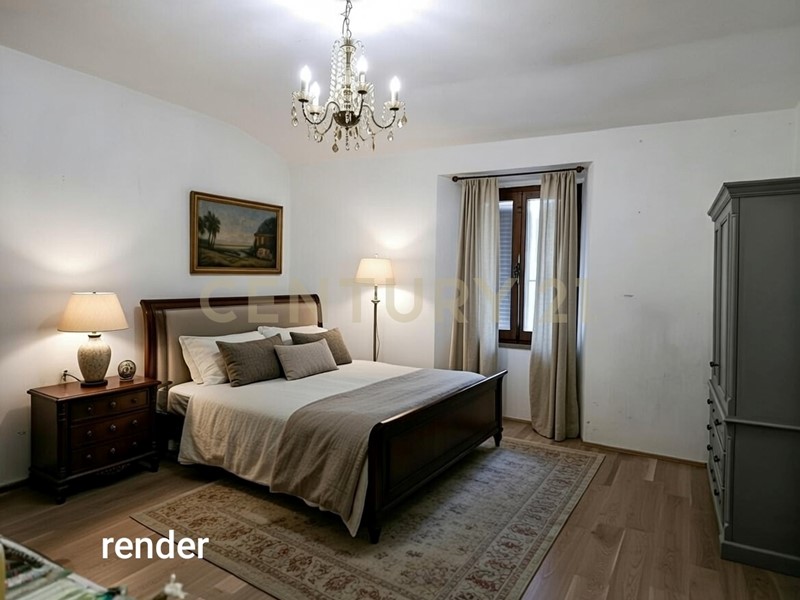 L’immobile, attualmente da rinnovare, offre grandi potenzialità di valorizzazione, come evidenziato dai render progettuali, che mostrano una possibile ristrutturazione moderna e funzionale, capace di trasformare gli spazi in una soluzione accogliente e contemporanea.