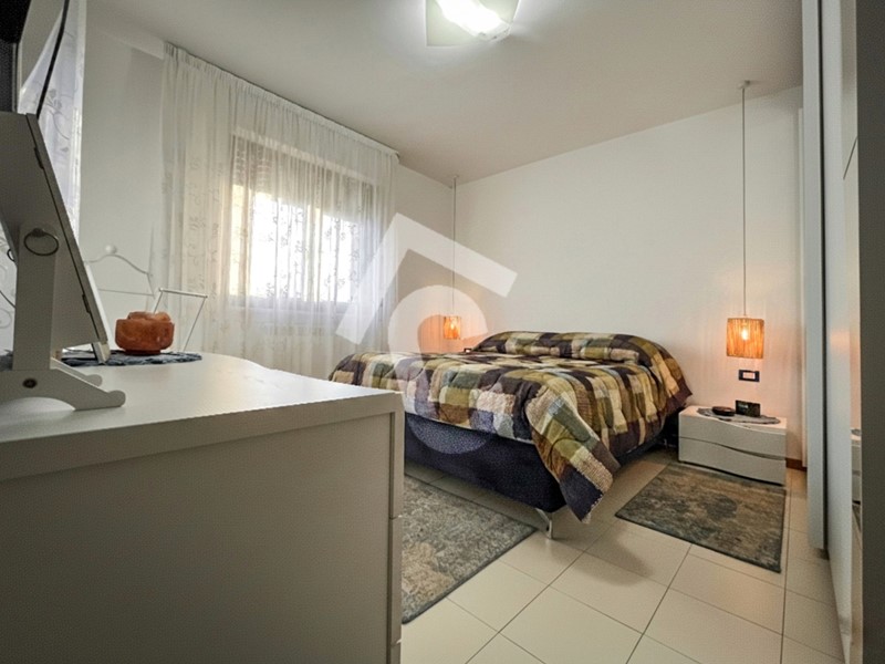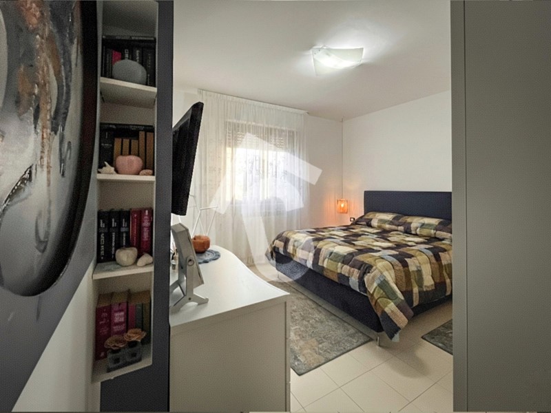 La zona notte è ben distribuita e comprende una camera matrimoniale e una cameretta, entrambe con accesso al balcone, oltre a un bagno con doccia.