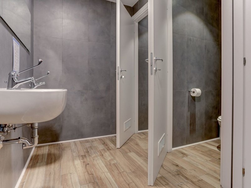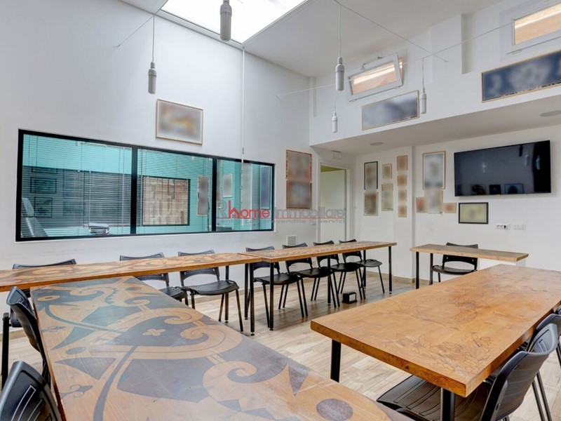 Ingresso con reception, 3 aule attrezzate per scuola di formazione, un laboratorio, cinque servizi igienici e uno spogliatoio. Completa la proprietà un piccolo cortile esterno ad uso esclusivo. La metratura interna è di 187 metri quadrati, dotati di lucernai che rendono gli ambienti luminosi e accoglienti.