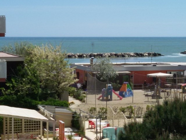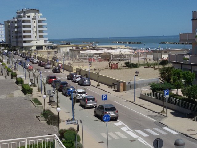 Lido di Savio. App. TRIS 2. Appartamento sul lungomare completamente ristrutturato, a 50 metri dalla spiaggia, in palazzina con ascensore, al 2° piano, composto da: sala con angolo cottura, lavatrice, forno alto e frigorifero con freezer a cassetti, divano letto e balcone abitabile attrezzato con tavolo e sedie con bella vista mare a 180°, una camera matrimoniale con portafinestra sul balcone, una cameretta con letti a castello, bagno finestrato con doccia a pavimento, aria condizionata, 5/6 posti.
