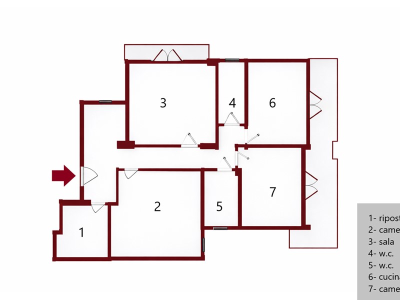 Appartamento di circa 150 m² catastali composto da: ingresso, ripostiglio, sala, cucina, due bagni e tre camere da letto. Costo EURO 180.000