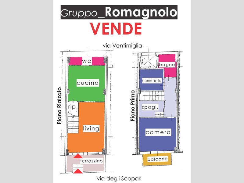 GRV_320_Casa singola dislocata su due livelli di mq. 84, costituita a piano rialzato da ingresso/living con separata cucina, w.c. e ripostiglio + a piano 1°, n. 2 camere, spogliatoio, bagno e balcone.