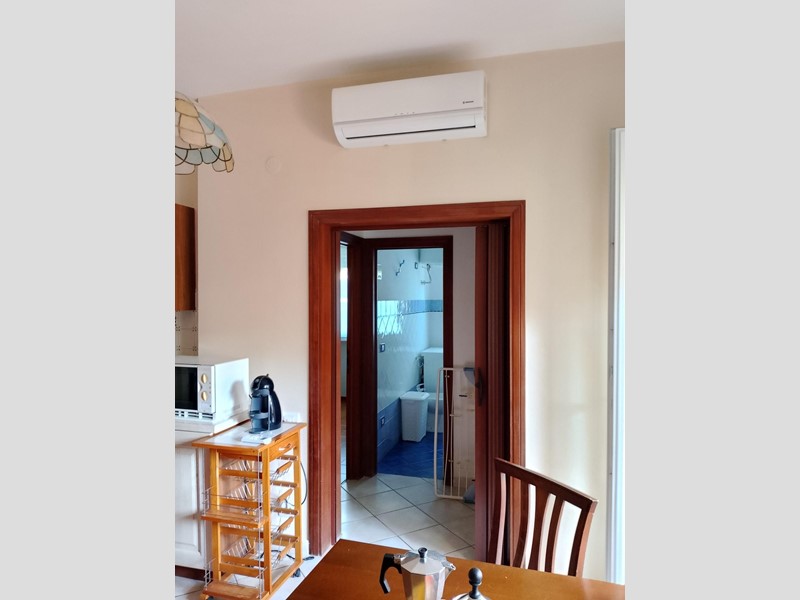 L'appartamento è composto da: un piccolo soggiorno con cucina a vista, due camere da letto , una matrimoniale e una con 2 letti singoli. Il bagno ha box doccia e finestra. L'immobile è dotato di piano induzione, macchinetta caffe', lavastoviglie, lavatrice in bagno, terrazza attrezzata per mangiare fuori, condizionatore in soggiorno e nelle camere, disponibile con un leggero costo aggiuntivo di € 100 per il mese, a richiesta . I PREZZI POSSONO VARIARE SECONDO IL PERIODO PRESCELTO e sono comprensivi di spese dei consumi, pulizie iniziali e finali e Diritti di Agenzia. I cagnolini di piccola e media taglia sono ammessi .