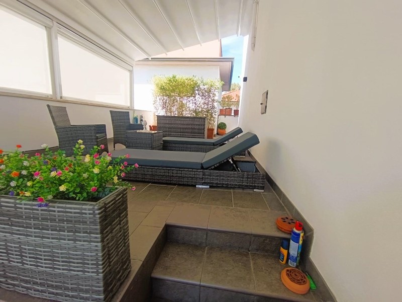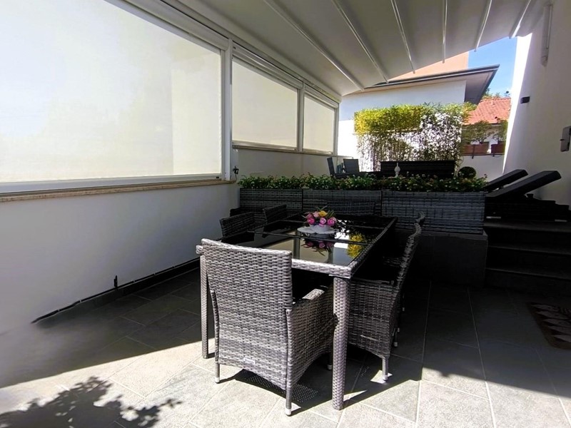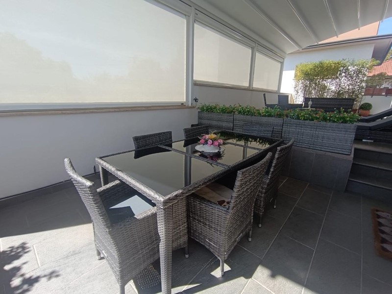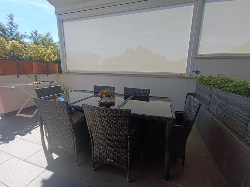Spazi Esterni: Grande terrazza, con tenda motorizzata per il massimo comfort in ogni stagione e per avere maggiore privacy.