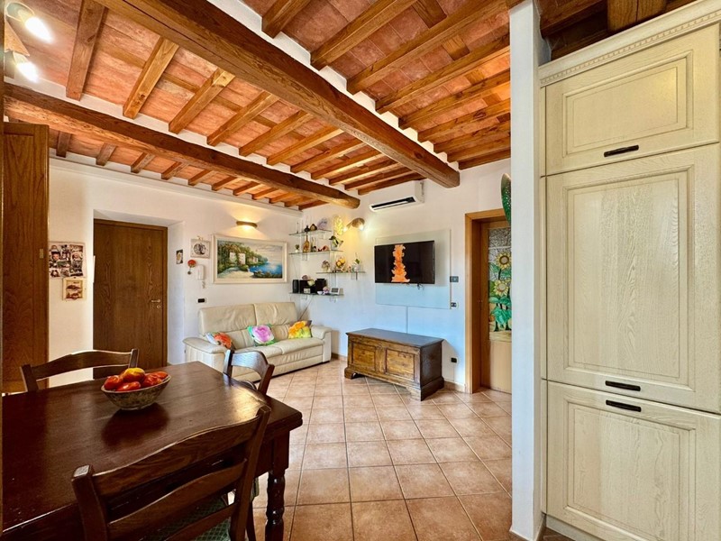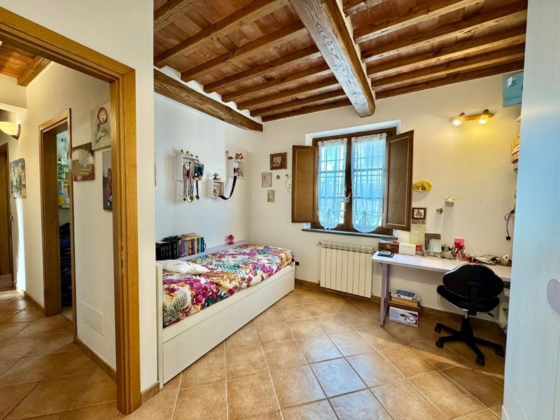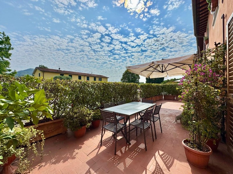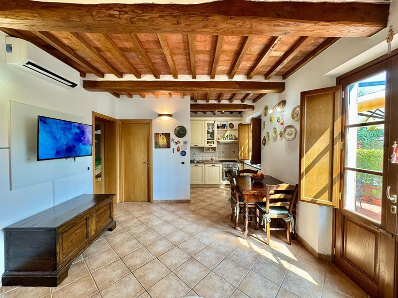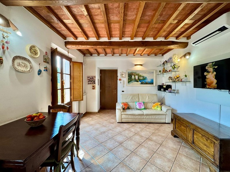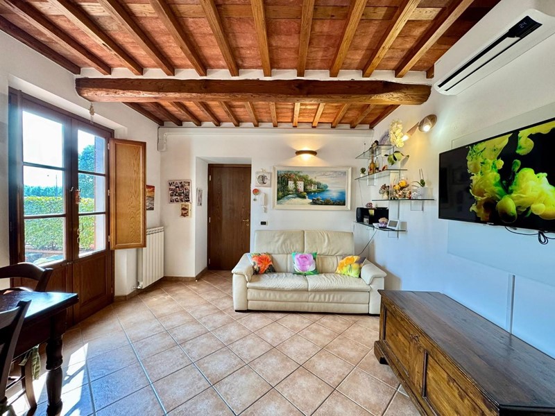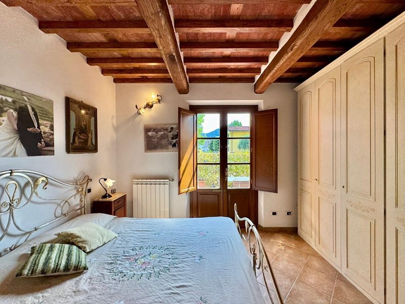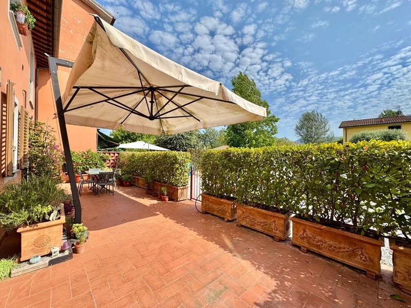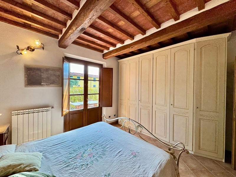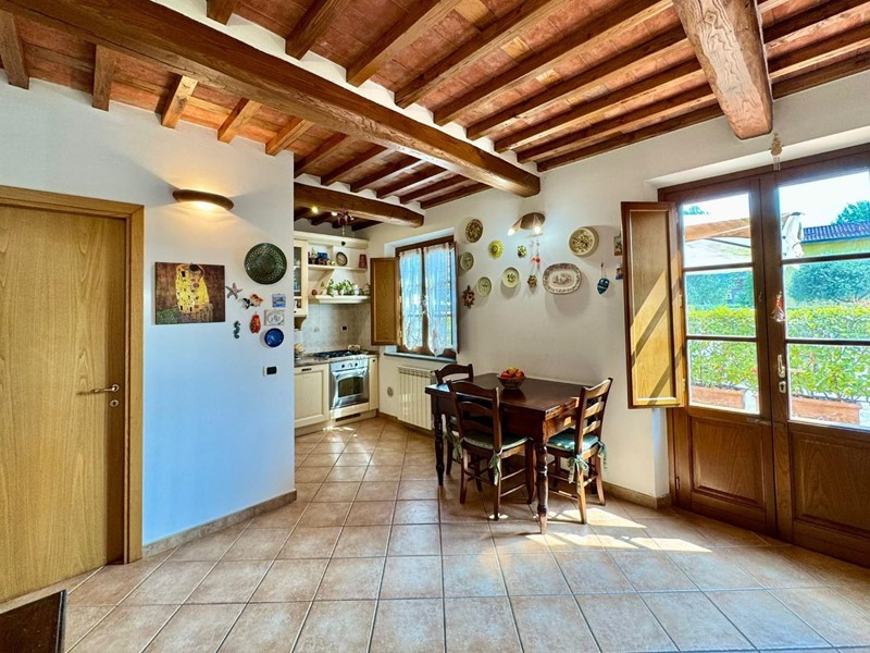 S.Angelo appartamento posto al piano terra all'interno di piccolo fabbricato completamente ristrutturato nel 2009 dal sapore rustico perfettamente coerente con il contesto. L'accesso principale è dall'ingresso condominiale e ci introduce direttamente nella zona giorno con soggiorno e cucina a vista affacciati e con accesso sulla resede esclusiva interamente esposta a sud. Completa la zona giorno un comodo locale ripostiglio/dispensa. La zona notte si compone di due camere matrimoniali (di cui una affacciata sulla resede a sud), una camera singola, un bagno principale con doccia e finestra ed un secondo servizio, anch'esso finestrato. Le finiture sono di ottima qualità e perfettamente in linea con il gusto rustico della campagna lucchese: travi a vista, pavimento in cotto, infissi in legno con vetrocamera. L'appartamento è dotato di aria condizionata sia nella zona notte che nella zona giorno. Corredato da una resede lastricata di oltre 20mq è ideale per godersi momenti all'aria aperta nella totale privacy e tranquillità. oltre ad un ulteriore resede sul lato nord (non accessibile dall'interno) e due posti auto di fronte alla casa. Rif. IA6472