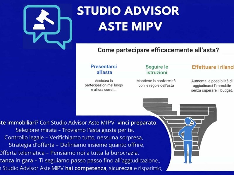 Questo annuncio è stato realizzato da StudioAdvisorAste estraendo le informazioni dalla documentazione ufficiale di vendita. L'annuncio e le informazioni contenute non sostituiscono la documentazione ufficiale e la pubblicità legale della vendita. StudioAdvisorAste non assume alcuna responsabilità per eventuali manomissioni, errori, omissioni e imprecisioni.