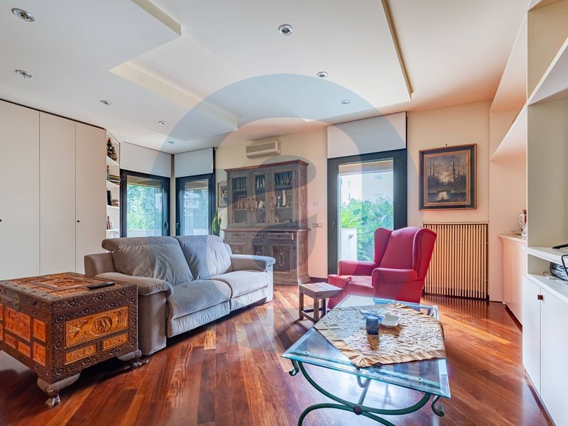 Pavimentazione in parquet. Infissi in alluminio con vetrocamera. Zanzariere. Avvolgibili in alluminio con apertura elettrica. Porta di ingresso blindata. Ambienti climatizzati. Riscaldamento autonomo. APE E.