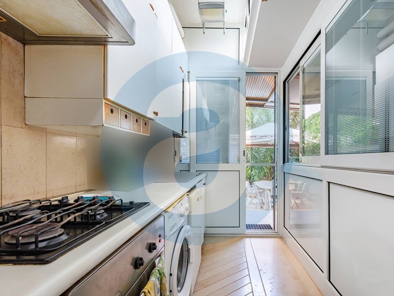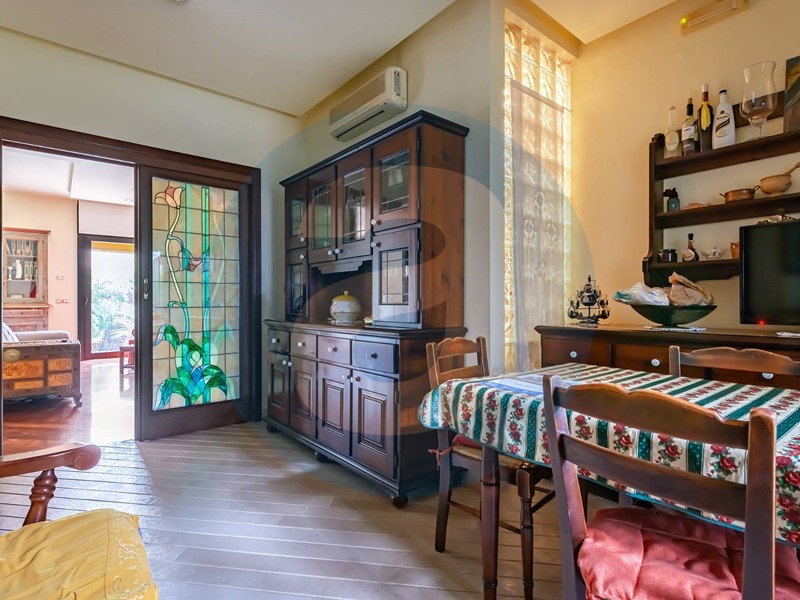 INTERNO: Appartamento di 130 mq composto da doppio ingresso dal pianerottolo; ampio salone con accesso al giardino; sala da pranzo; cucina su veranda condonata; camera matrimoniale con bagno privato dotato di vasca; due camere da letto; bagno padronale con doccia.