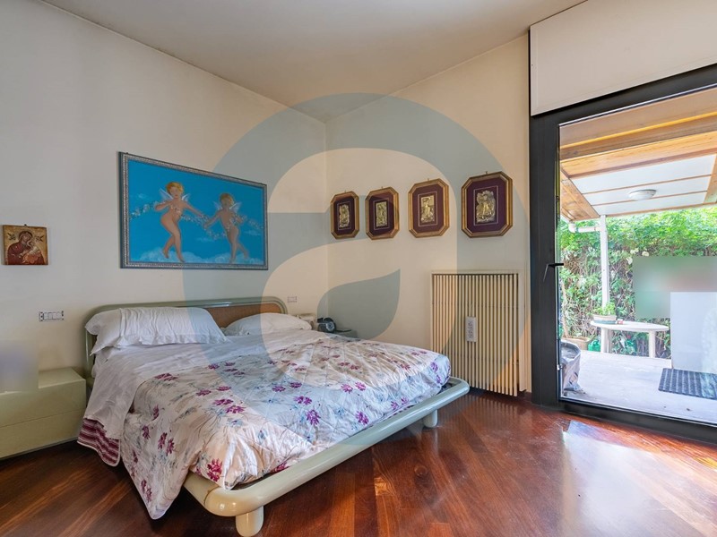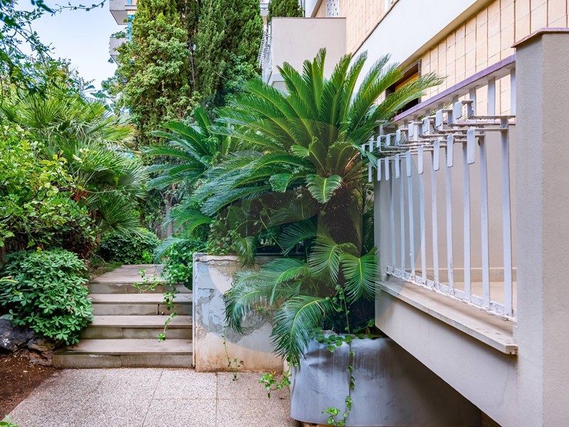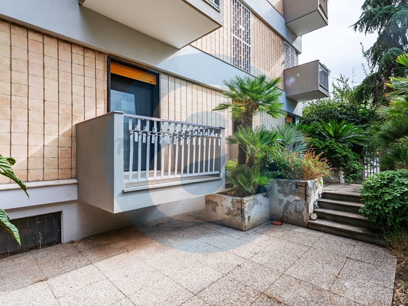 ESTERNO: Appartamento al piano rialzato in un edificio di otto piani, dotato di ascensore. Superficie esterna di 250 mq composta in parte da giardino e in parte da area coperta da tettoia regolarmente autorizzata. Cantina di 8 mq a piano interrato. Oltre al doppio ingresso da pianerottolo è presente un ingresso autonomo, direttamente dal giardino.